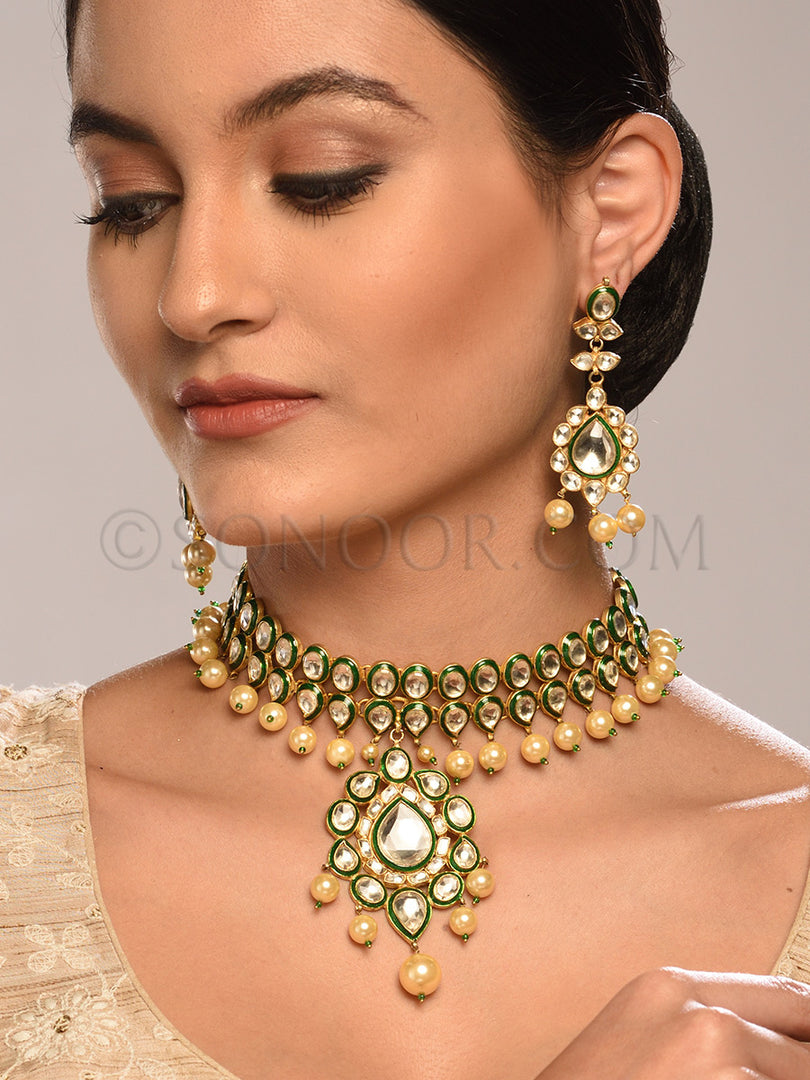 Explore the timeless beauty of Indian necklaces at Sonoor.com. From intricately designed pieces inspired by traditional motifs to modern interpretations, these necklaces are crafted to perfection, making a statement at any event.