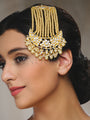 The incorporation of fresh water pearls adds a soft, feminine touch, enhancing the overall regal charm of this headpiece. Designed for those who appreciate the finer details, the Jhumer sits gracefully on your head, framing your face with an ethereal beauty. The versatility of the dull gold finish makes it a perfect accompaniment to weddings, festive occasions, and cultural celebrations.