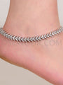 Introducing our exquisite Pair of Payals, a stunning fusion of traditional charm and contemporary elegance. Crafted in a lustrous silver rhodium finish, each ankle bracelet is adorned with brilliant cubic zircons, creating a captivating interplay of sparkle with every step.