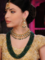 Ideal for the discerning bride who seeks the perfect synthesis of heritage and modern allure, this Bridal Set reflects meticulous craftsmanship and a commitment to excellence. The distinguished dull gold finish enhances the brilliance of Kundan stones and the ethereal beauty of green quartz, ensuring a captivating presence on the most special day.
