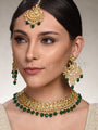 Ideal for the discerning bride who appreciates a blend of heritage and contemporary elegance, this Bridal Set reflects a commitment to excellence. The distinguished dull gold finish enhances the brilliance of Pachi Kundan and the natural beauty of green agate stones, ensuring a captivating presence on the most special day.