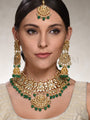 Ideal for the discerning bride who appreciates a blend of heritage and contemporary elegance, this Bridal Set reflects a commitment to excellence. The distinguished dull gold finish enhances the brilliance of Pachi Kundan and the natural beauty of green agate stones, ensuring a captivating presence on the most special day.