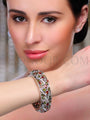 The silver rhodium finish adds a modern and sleek aesthetic to the kada, providing a radiant backdrop for the captivating blend of garnet and peridot stones. The combination of these gemstones creates a harmonious play of deep reds and vibrant greens, making this kada a versatile accessory suitable for various occasions.