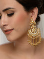 Perfect for adding a touch of regality to formal occasions or elevating your everyday look, these Gold Finish Earrings effortlessly transition from day to night. Embrace the luxurious beauty of Pachi Kundan stones with our exquisite earrings—a timeless addition to your jewelry collection that speaks volumes about your discerning taste and appreciation for the finer things in life.