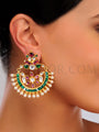 The combination of Pachi Kundan, pearls, rhodonite, and jade stones results in a dynamic and visually striking accessory. These earrings seamlessly blend classic charm with modern grace, offering a unique and luxurious addition to your jewelry collection.