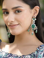 Sangya Earrings in silver victorian finish studded with citrine and green agate stones |