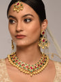 Sonoor's Navya Gold Handcrafted Bridal Set is also an excellent choice for brides seeking red Indian bridal jewelry sets. Its rich gold tones and exquisite detailing make it a standout piece that harmonizes beautifully with traditional red bridal attire. The set embodies the grandeur and opulence typical of Indian bridal jewelry, making it a perfect fit for cultural ceremonies and festivities.