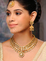 Whether gracing a special occasion or enhancing your everyday style, this Necklace Set with Earrings is designed to captivate. The combination of dull gold, Kundan stones, red jade, and blue iolite stones creates a versatile and enchanting accessory that effortlessly enhances your unique style.