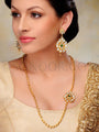 Elevate your ensemble with the understated luxury of this Necklace Set with Earrings, where the warmth of the dull gold finish meets the timeless beauty of kundan stones and the contemporary appeal of green jade. Make a statement that captures the essence of enduring craftsmanship and showcases your impeccable taste in jewelry.