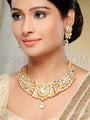 Elevate your ensemble with the bespoke charm of this set, where the luxurious dull gold finish meets the regal beauty of fine-cut kundan stones. Celebrate the enduring allure of meticulously crafted jewelry, making a lasting impression that transcends trends and showcases your impeccable taste.