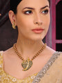 The dull gold finish imparts a vintage-inspired charm, making this Pendant Set with Earrings a timeless accessory suitable for special occasions or to infuse a touch of opulence into your everyday style. Elevate your look with the classic combination of kundan and meena kari, embracing a sense of enduring elegance and cultural richness.