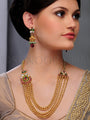 The inclusion of rhodonite stones introduces a soft and rosy elegance, balancing the richness of gold with a touch of natural beauty. This Necklace Set with Earrings is a versatile choice for various occasions, seamlessly transitioning from cultural celebrations to formal events with timeless grace.