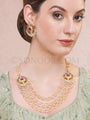 Experience the epitome of timeless elegance with our Dull Gold Finish Necklace Set, adorned with the intricate allure of Kundan and the vibrant hues of Navratan stones. This regal ensemble, complete with matching earrings and a Maang Tika, seamlessly fuses vintage charm with modern sophistication, creating a piece that captures the essence of opulence and tradition.