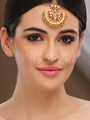 Designed to gracefully adorn the forehead, this Maang Tika in dull gold finish is a versatile accessory that seamlessly combines classic design with modern appeal. Whether paired with traditional attire or integrated into a fusion look, let the vintage charm and contemporary hues of this headpiece make you the center of attention at every occasion. Adorn yourself with sophistication and tradition with our Pachi Kundan and Jade Maang Tika.