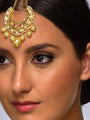 Meticulously studded, the kundan stones provide a timeless sparkle, while the lustrous pearls and vibrant jade stones contribute to a luxurious and contemporary aesthetic. Designed to grace your forehead with regal charm, this Matha Patti is perfect for weddings, cultural events, or any occasion where you desire to make a statement.