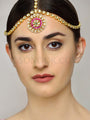 Kundan Matha Patti With Pink Stones in Gold Finish