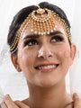 Elevate your ethnic charm with our Matha Patti, a radiant headpiece that exudes timeless beauty. Crafted in a captivating dull gold finish, this accessory is adorned with meticulously placed kundan stones, creating a dazzling play of light and sophistication.