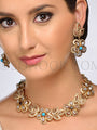 Whether gracing a special occasion or adding a touch of glamour to your everyday attire, this necklace set with earrings is designed to captivate. The combination of dull gold, Kundan, blue iolite, and ruby stones creates a versatile and enchanting accessory that effortlessly enhances your individual style.