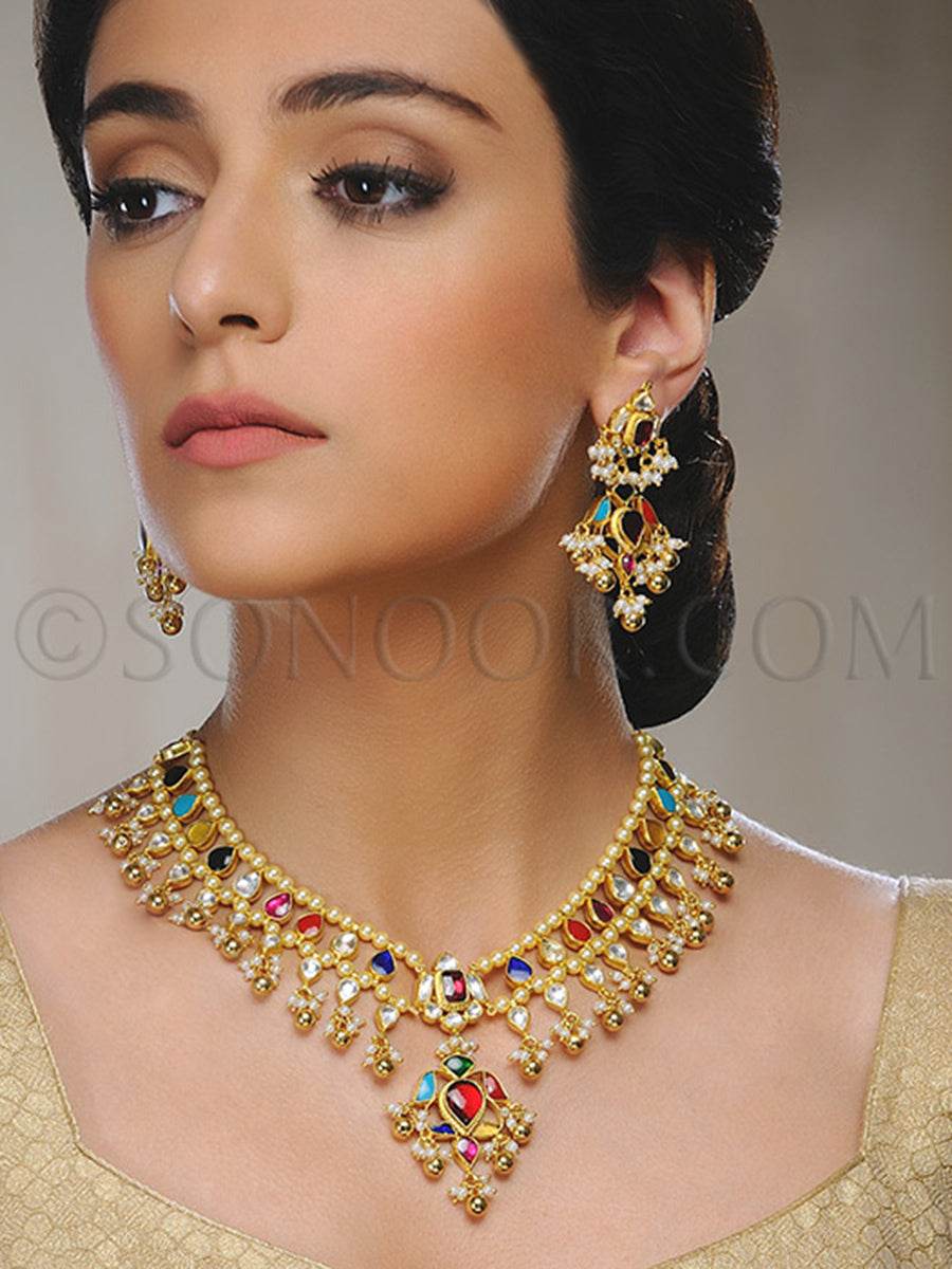 Discover the beauty of our earring necklace set, pandora necklace set, and layered necklace set, each piece radiating a unique style. Indulge in the charm of our choker set, peacock necklace, and kundan set, each expressing a unique tale of craftsmanship. Sonoor invites you to adorn our stunning earring and necklace sets for women, seamlessly blending cultural richness with modern finesse. Shop now and embrace the timeless allure of our necklace and earring sets. Make a statement with Sonoor.com – your ultimate destination for authentic Indian jewelry online.