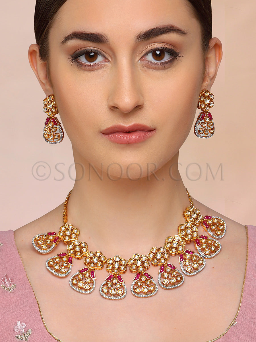 Elevate your style with the exquisite collection of Indian necklaces at Sonoor jewels. Our Jewelry Necklaces From India captures the essence of tradition and contemporary elegance offering a wide range of options. Explore the allure of our Indian jewelry necklaces with earring sets, meticulously crafted to perfection.