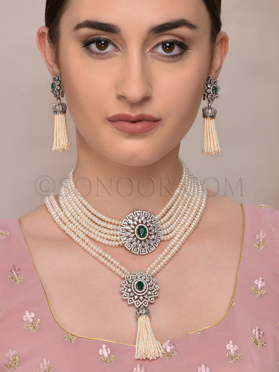 Sairah Pearl Strings Kundan Combo Necklace Set