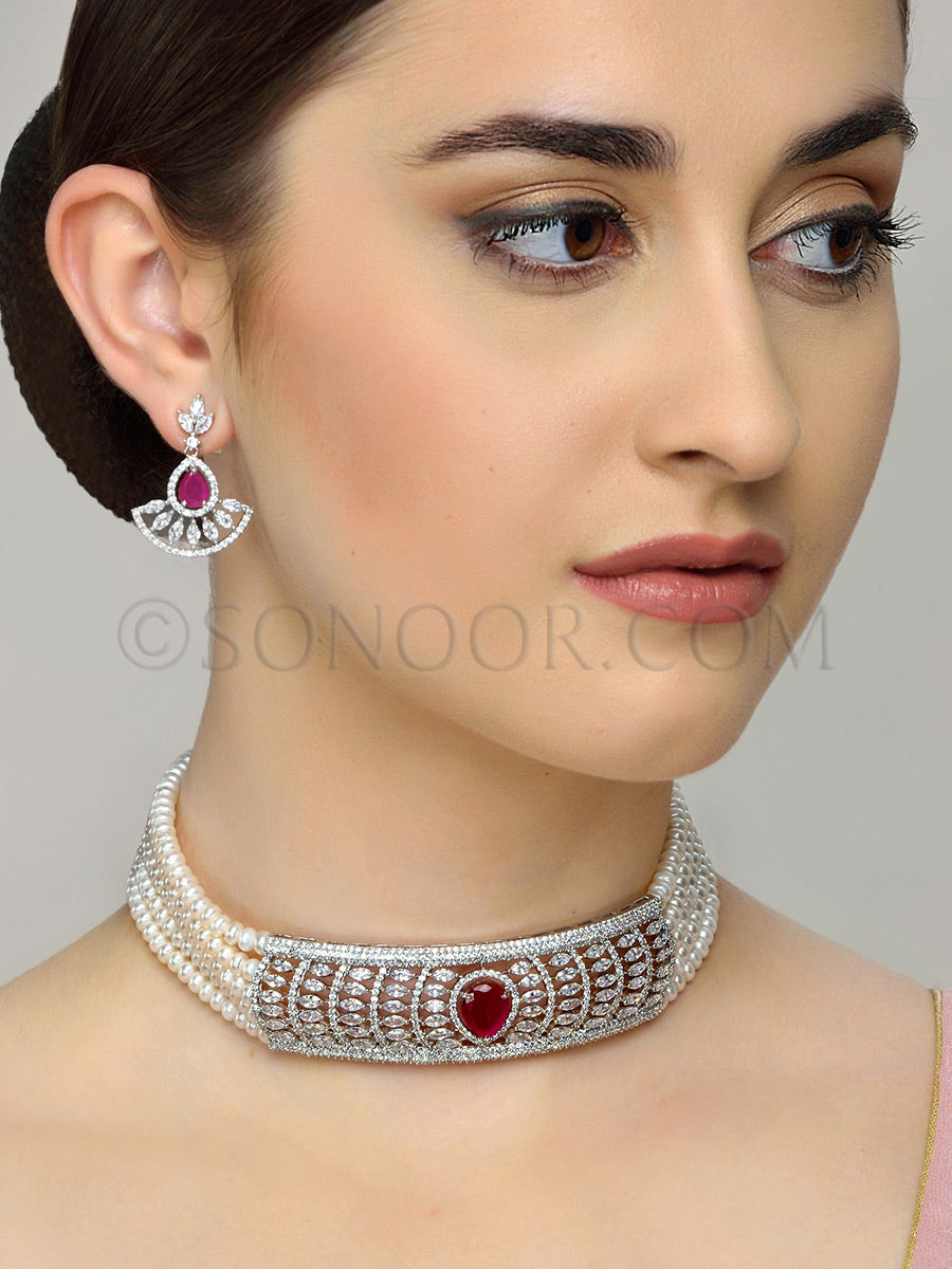 For those who prefer a more traditional look, our Indian pearl choker necklaces are the epitome of elegance. These chokers, often adorned with intricate designs and embellished with precious stones, offer a regal charm that is unmistakably Indian. They sit snugly around the neck, highlighting the grace and beauty of the wearer. Each choker in our collection is a testament to the craftsmanship and artistry that goes into creating these stunning pieces.