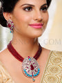 The pendant takes center stage with its intricately designed centerpiece, where cubic zircons sparkle alongside the captivating tones of agate and the soothing blue-green shades of turquoise. Complementing this opulent pendant, the earrings mirror the same luxurious detailing, ensuring a perfectly coordinated ensemble.