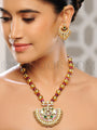 Designed for those who appreciate the seamless fusion of classical charm and modern aesthetics, this Pendant Set with Earrings effortlessly marries the timeless allure of Pachi Kundan with the refreshing appeal of jade stones. The result is a versatile and stylish choice for various occasions, adding a touch of regality to your ensemble.