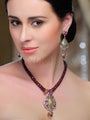 Introducing our exquisite Pendant Set with Earrings, a mesmerizing fusion of Victorian elegance and contemporary allure in a radiant Silver finish. This stunning jewelry set showcases meticulous craftsmanship and a harmonious combination of two enchanting gemstones – ruby and smokey topaz.