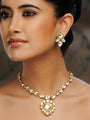 The pendant, lovingly handcrafted in silver with a faux gold finish, pays homage to the grandeur of Bikaneri Pachi Kundan, capturing the essence of traditional craftsmanship with its intricate detailing and timeless design. Each Kundan is meticulously set to create a piece that radiates sophistication and elegance.