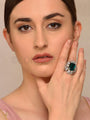 Elevate your ensemble with this stunning handcrafted Finger Ring, where the artisanal design meets the resplendent charm of baguette stones and the vibrant allure of green Cubic Zirconia. Make a lasting impression, and let this ring become a cherished symbol of your unique style and enduring sophistication.