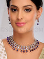 The necklace features meticulously set cubic zircons, each one catching and reflecting the light against the polished silver rhodium finish. Interspersed with these sparkling gems are the rich, deep blue iolite stones, adding a touch of regal charm and natural beauty to the design. This unique combination results in a versatile set that seamlessly transitions from formal affairs to everyday chic.