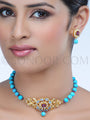 Designed for those who appreciate the artistry of handmade jewelry, this Pendant Set with Earrings seamlessly marries the richness of rubies, cubic zircons, and turquoise stones with the warm tones of the dull gold finish. The result is a statement piece that effortlessly elevates your style, suitable for various occasions where tradition meets contemporary allure.