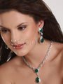 Designed for those who appreciate the artistry of handmade jewelry, this Pendant Set with Earrings seamlessly marries the richness of cubic zircons and green jade CZ stones in a sterling silver rhodium finish. The result is a statement piece that effortlessly elevates your style, suitable for various occasions where modern flair meets classic allure.