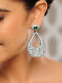 Elevate your style with these Silver Rhodium Finish Earrings, where handcrafted artistry meets the brilliance of cubic zircons and the vibrant charm of colored CZee stones. Make a lasting impression that transcends trends, and let these earrings become a cherished addition to your jewelry collection, embodying the perfect fusion of craftsmanship and contemporary elegance.