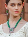 Introducing our exquisite Pendant Set with Earrings, a captivating blend of vintage charm and modern allure. Meticulously crafted with a radiant silver Victorian finish, this ensemble is adorned with a dazzling trio of cubic zircons, vibrant rubies, and the subtle elegance of baguette-cut stones.