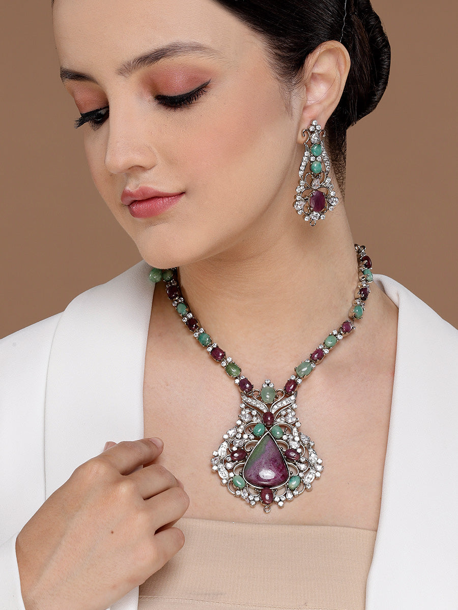 Noorin Victorian Green Stone Pendant Set