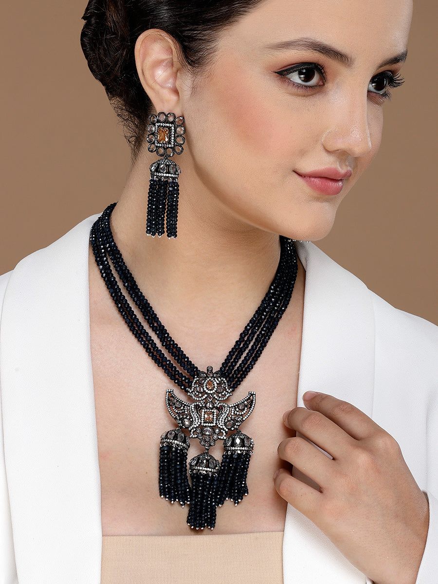 Kuvam Victorian Black & Blue Stone Pendant Set