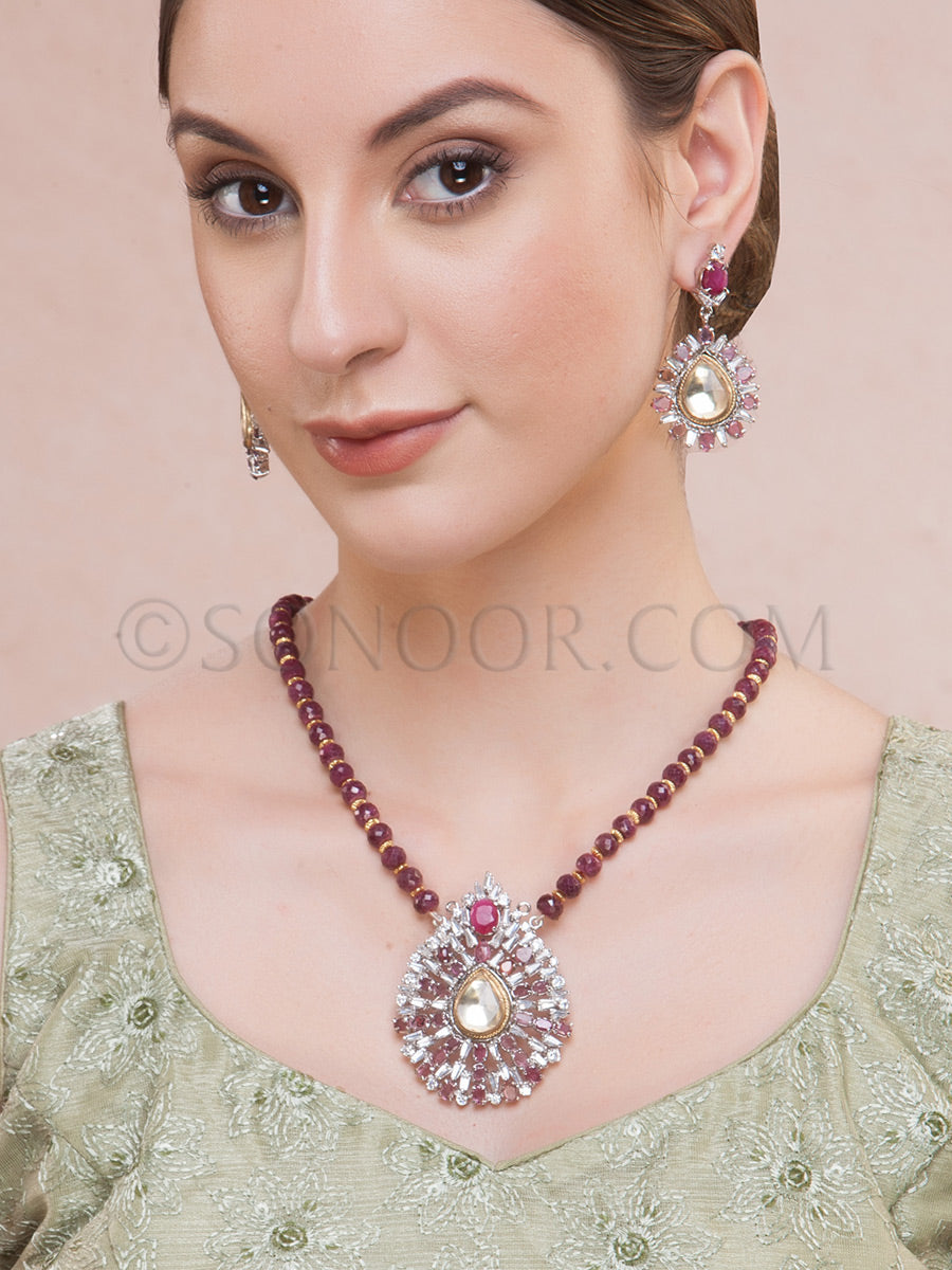 Lekha Zircon Ruby Beads Pendant Set
