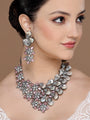 The Diti Rose Quartz Necklace Set, adorned with intricate Victorian detailing, provides a regal backdrop for the brilliance of Cubic Zirconia, adding a touch of glamour to the ensemble. Nestled among them, the soft pink hues of Rose Quartz exude a delicate beauty, while the iridescence of Mother of Pearl imparts an ethereal quality, reminiscent of bygone eras.