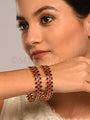 Meticulously crafted to perfection, this Pair of Bangles in dull gold finish showcases superior artistry and attention to detail. The combination of iolite and red jade stones enhances the overall allure, making these bangles a statement piece for those who appreciate distinctive craftsmanship.