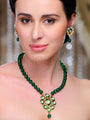 Elevate your style with this extraordinary jewelry set, where the marriage of Pachi Kundan and Meena Kari creates a piece that transcends fashion trends, embodying the spirit of heritage and sophistication.