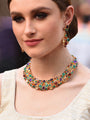 Introducing our exquisite Necklace Set with Earrings in a captivating dull gold finish, adorned with a splendid array of gemstones. This meticulously crafted jewelry ensemble features a harmonious blend of iolite, citrine, garnet, onyx, and jade stones, creating a stunning mosaic of colors and textures.